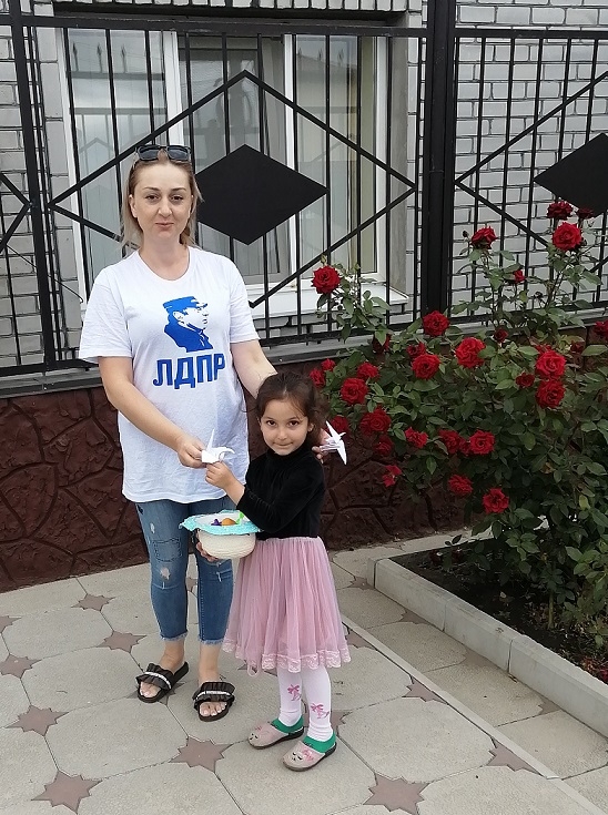 Активисты Кабардино-Балкарского регионального отделения ЛДПР приняли участие в акции "Ангелы Донбасса" и раздали детям белых журавликов. Акция "Ангелы Донбасса" был приурочен к Дню памяти детей – жертв военных преступлений киевского режима.