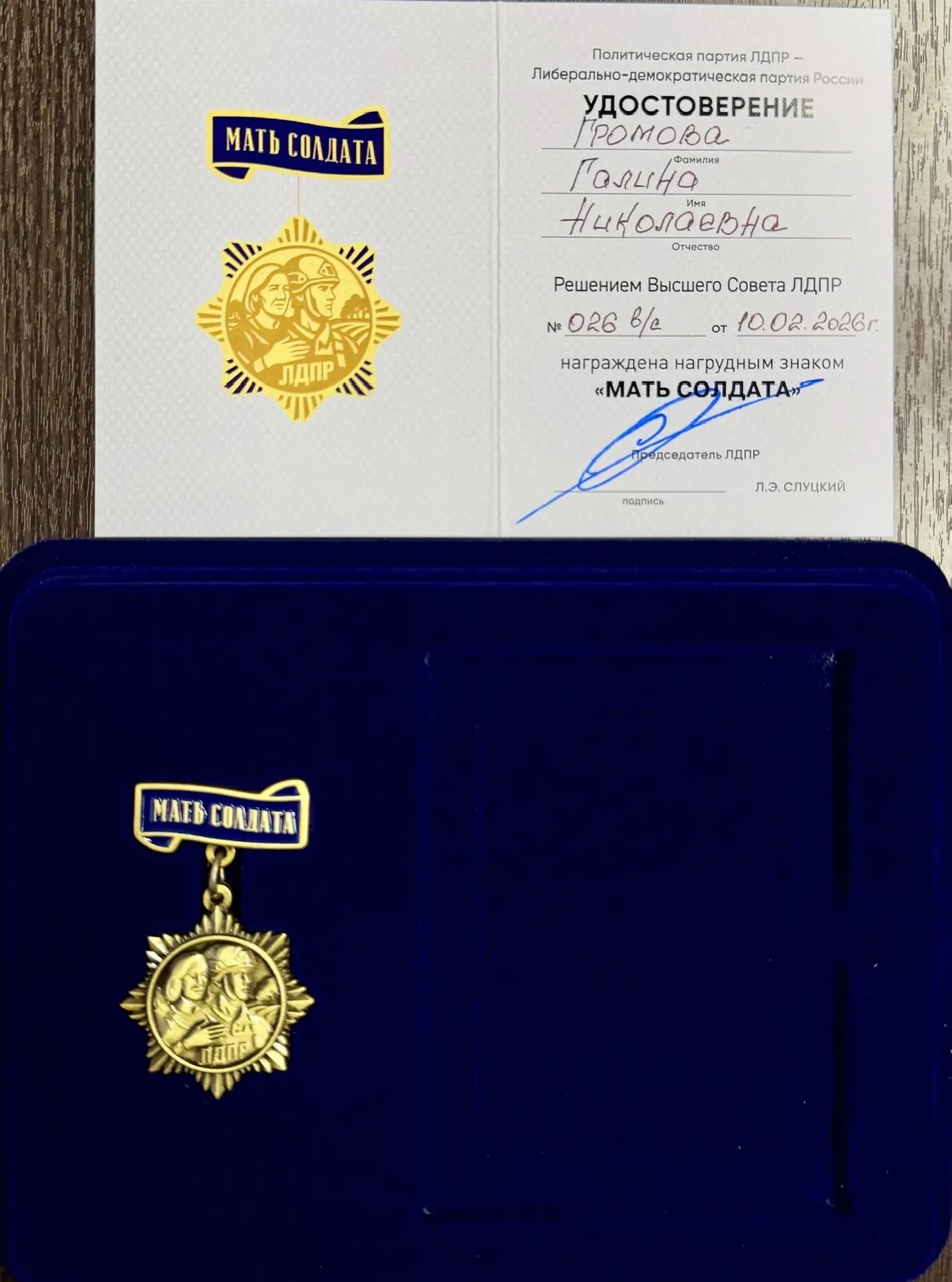 Владимир Безгодько вручил медаль ЛДПР «Мать солдата»